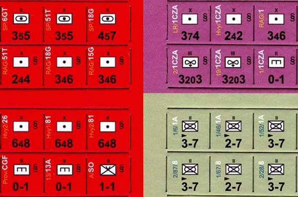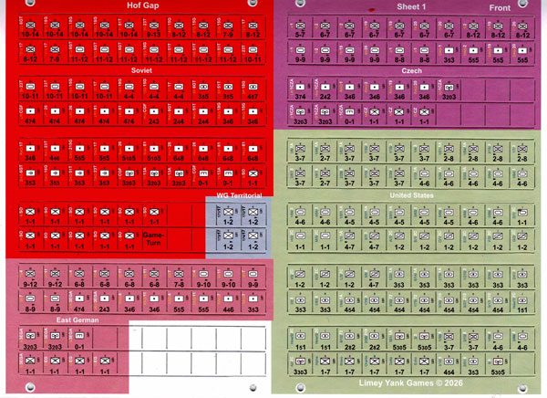 The cosmetic changes are such things as enlarging the font, adding aircraft silhouettes, etc. There are no changes to unit values. These are single sided and available as a combined set. 240 single-sided counters (inc. blanks).